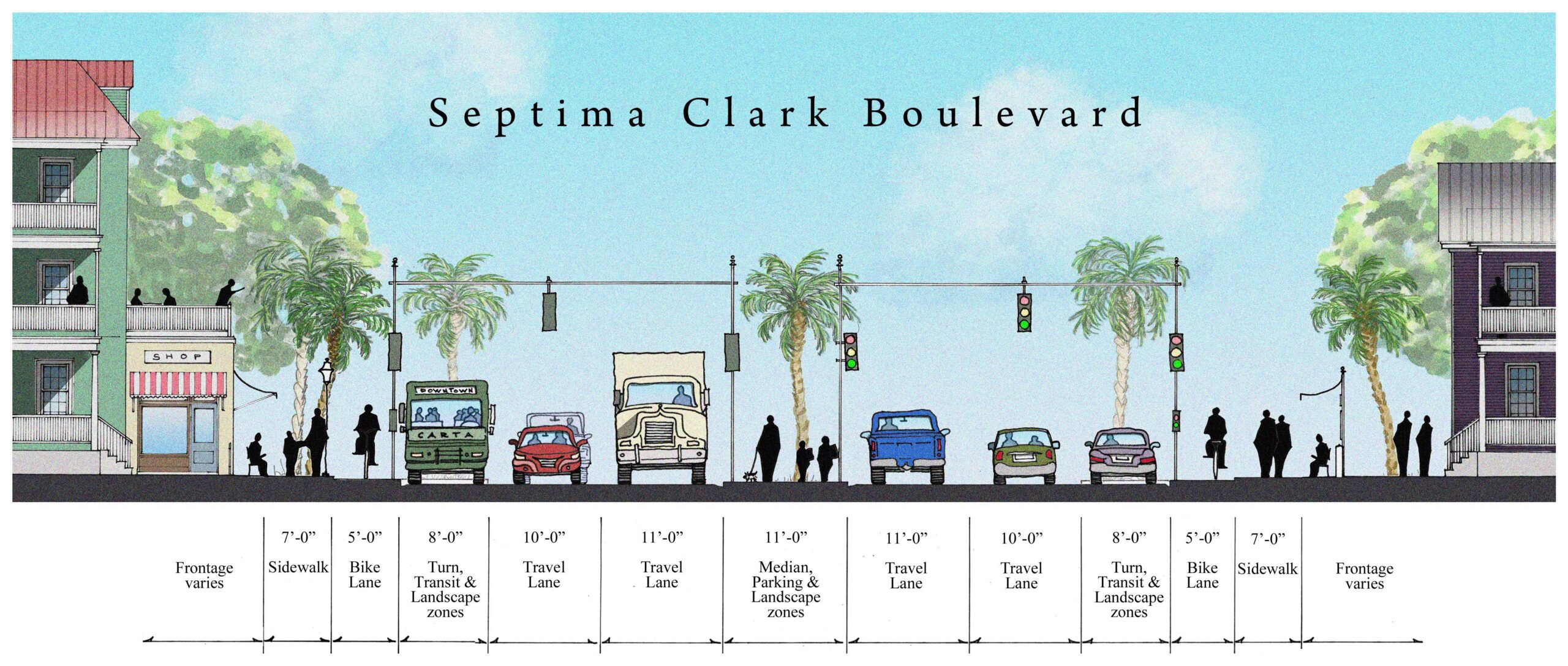 Phase II’s transfer of control to the City of Charleston and its designation of the Crosstown as an alternate US-17 bypass route, similar to Myrtle Beach, gives the city the authority to properly maintain the road as a neighborhood street without reducing capacity along the heavily traveled Coastal Highway. This will allow city leadership more control over further traffic calming designs, such as replacing the outer lanes with on-street parking, bus stops and new curbs, and landscaping to protect pedestrians and bicyclists.
