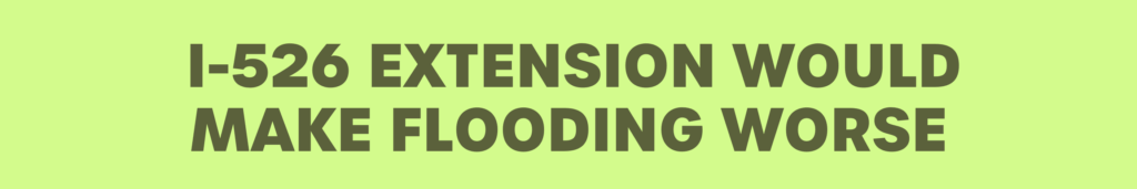 The proposed route is only 9 miles of road and connects to existing coastal roads. This won’t speed up any evacuation process, especially downtown or on the other side of the county in Mount Pleasant. In fact, the I-526 route will run through low-lying areas and destroy our natural storm barrier wetlands, exacerbating flood risk in already vulnerable communities. The I-526 route doesn’t consider flooding impacts or sea level rise, and will already be outdated by the time it would be built.