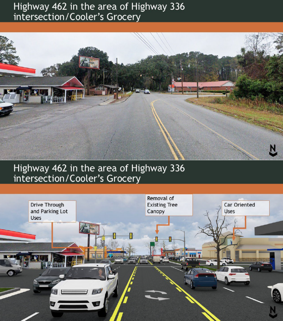 If these developments are built out, they could drastically alter the character of crossroads like Cooler’s Corner. The rural crossroads of Hwy. 336 and Hwy. 462 might look like this.